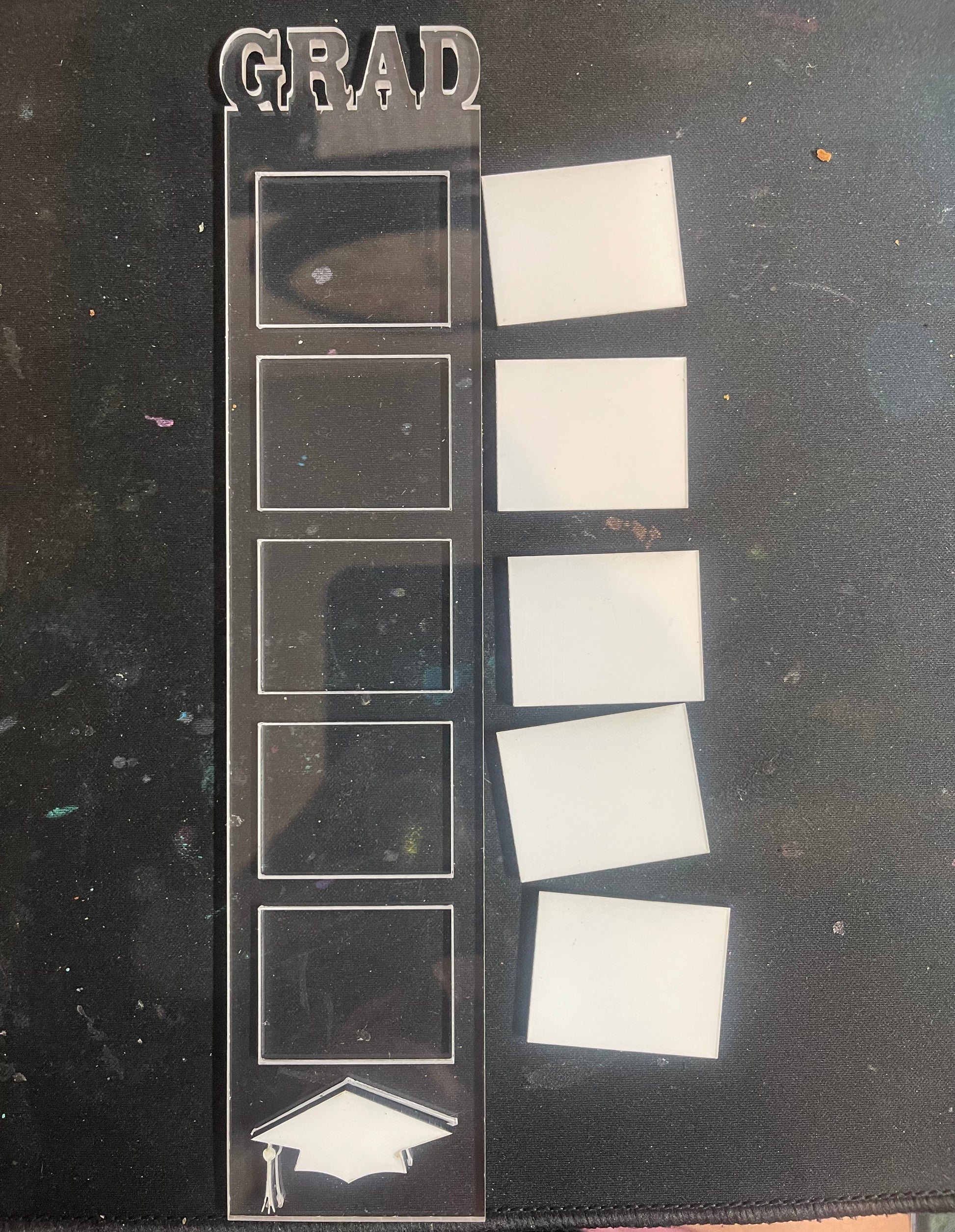 Introducing the Graduation 5 Small Pictures 10x2” Frame, a unique way to celebrate your achievements. This frame features an elegant acrylic base and includes six inserts, allowing you to showcase your favorite moments in a compact design.