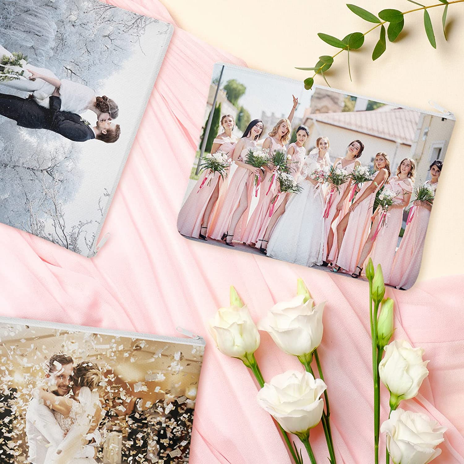 Sublimation Blank Canvas Makeup Bags Pouch with Zipper (7.87 x 5.7 Inch, White)